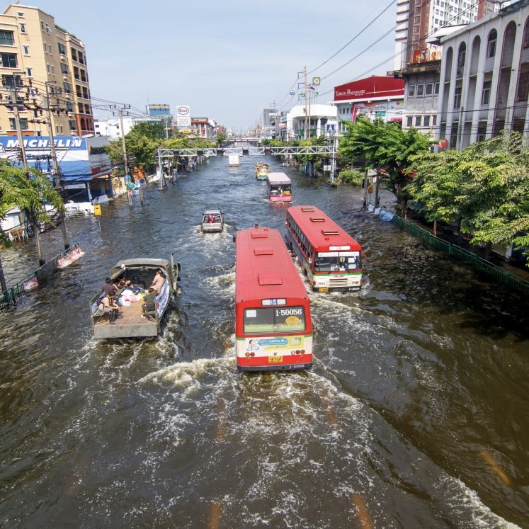 องค์การเพื่อความร่วมมือและการพัฒนาทางเศรษฐกิจ (OECD) ระบุว่า ตั้งแต่ปี พ.ศ. 2563 เป็นต้นไปประชากร 5 ล้านคนจาก 10.7 ล้านคนในกรุงเทพ มหานครอาจเผชิญกับความเสี่ยงจากน้ำท่วมโดยคาดว่าพื้นที่หนึ่งในสามของเมืองหลวงของไทยอาจจมอยู่ใต้น้ำทั้งหมดภายใน พ.ศ. 2593 และส่งผลให้ประชาชนเกือบ 11 ล้านคนต้องอพยพออกจากพื้นที่ สัญญาณเตือนภัยชัดเจนถึงเวลาแล้วที่รัฐบาลต้องคิดใหญ่ทำใหม่คิกออฟนโยบายและเริ่มก้าวแรกในช่วงเวลา4 เดือนที่ยังบริหารประเทศ อย่าปล่อยให้กรุงเทพฯเป็นมหานครแห่งความเสี่ยงทั้งเมืองเสี่ยงและประชาชนเสี่ยงจากวิกฤตคู่ทำให้กรุงเทพยุบและกรุงเทพจมดังเช่นที่เป็นอยู่ในวันนี้และตลอดไป.