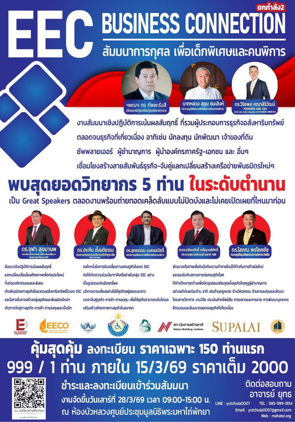 ดร.วิริยพล คณาสิริวัฒน์ ผู้ก่อตั้งและประธานเจ้าหน้าที่บริหารนิตยสารออนไลน์ 3 ภาษา ไทย จีน อังกฤษ ในนาม“TRENDS REAL ESTATE MAGAZINE” และผู้ก่อตั้งและประธาน “EEC BUSINESS CONNECTION”และที่ปรึกษามูลนิธิพระมหาไถ่เพื่อการพัฒนาคนพิการ เตรียมจัดงานสัมมนาการกุศลเพื่อเด็กพิเศษและคนพิการ ภายใต้ชื่องาน “EEC BUSINESS CONNECTION ยกกำลัง 2” ในวันเสาร์ที่ 28 มีนาคม 2569 ณ.ห้องบัวหลวง ศูนย์ประชุมมูลนิธิพระมหาไถ่ พัทยา จ.ชลบุรี โดยได้ร่วมกับมูลนิธิพระมหาไถ่เพื่อการพัฒนาคนพิการ ที่ก่อตั้งในปี พ.ศ. 2527 โดยบาทหลวงเรย์มอนด์ เบรนแนน (คุณพ่อเรย์) ที่เมืองพัทยา จ.ชลบุรี เพื่อสร้างอาชีพและยกระดับคุณภาพชีวิตคนพิการทั่วประเทศฟรี โดยไม่เก็บค่าใช้จ่าย ทั้งการศึกษาผ่านวิทยาลัยเทคโนโลยีพระมหาไถ่ พัทยา และศูนย์ฝึกอาชีพต่างๆ เพื่อให้พึ่งพาตนเองได้มาอย่างยาวนานจนเป็นที่รู้จักในปัจจุบัน รวมทั้ง กลุ่มพันธมิตรและภาคีเครือข่าย อาทิ สำนักงานคณะกรรมการนโยบายเขตเศรษฐกิจพิเศษภาคตะวันออก EEC พร้อมสุดยอดวิทยากร 5 ท่านระดับตำนานในงาน ประกอบด้วย ดร.จุฬา สุขมานพ เลขาธิการคณะกรรมการนโยบายเขตเศรษฐกิจพิเศษภาคตะวันออก EEC ซึ่งดูแลนโยบายและแผนงานการลงทุนทั้งระบบกว่า 8 แสนล้านบาท ดร.ประทีป ตั้งมติธรรม ผู้ก่อตั้งและประธานกรรมการบริหารบริษัท ศุภาลัย จำกัด (มหาชน) บริษัทชั้นแนวหน้าในตลาดอสังหาริมทรัพย์ ดร.ศุภรธรรม มงคลสวัสดิ์ เลขาธิการมูลนิธิพระมหาไถ่เพื่อการพัฒนาคนพิการ ซึ่งดูแลและช่วยเหลือเด็กพิเศษและคนพิการกว่า 10,000 คนที่ผ่านมา ศ.ดร.เกรียงศักดิ์ เจริญวงศ์ศักดิ์ ประธานสถาบันการสร้างชาติ NBI ผู้นำความคิดจาก 3 ทวีป 4 มหาวิทยาลัยโลก สมาคมเครือข่ายผู้สื่อข่าวและสื่อมวลชนนานาชาติ และ ดร.โสภณ พรโชคชัย ประธานศูนย์ข้อมูลวิจัยและประเมินค่าอสังหาริมทรัพย์ไทย และนายกสมาคมอสังหาริมทรัพย์สากล FIABCI THAI ซึ่งFIABCIก่อตั้งมา67 ปี มีสมาชิกรวม 70 ประเทศ ใน 5 ทวีปทั่วโลก