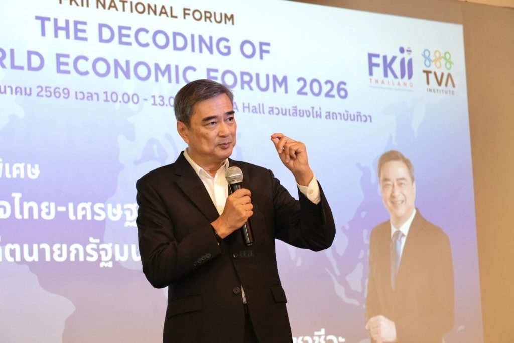 นายอภิสิทธิ์ เวชชาชีวะ อดีตนายกรัฐมนตรี ปาฐกถาพิเศษ“อนาคตโลก อนาคตไทย”โดยชี้ถึง 3 ปัจจัยเปลี่ยนโลก ได้แก่