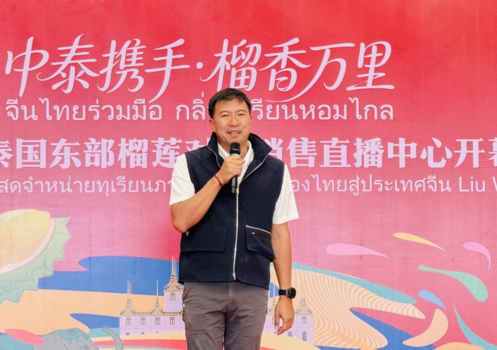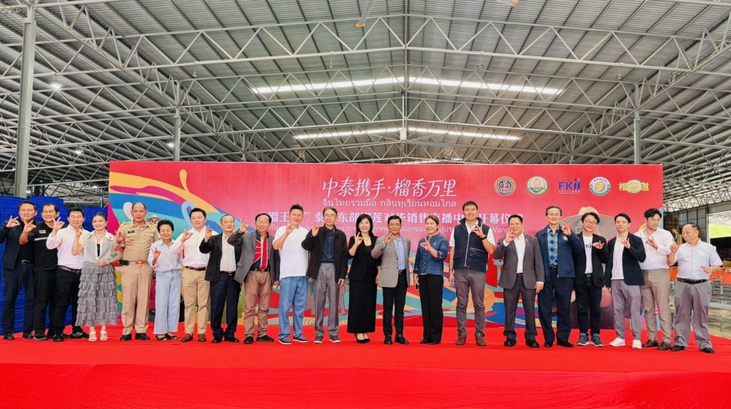 27 เม.ย. 69 ที่ผ่านมาบริษัท หางโจว หวั่งเฉา เทคโนโลยี ที่ เลขที่ 139 ม.11 ต.ปัถวี อ.มะขาม จ.จันทบุรี ได้มีการจัดพิธีเปิด “ศูนย์ถ่ายทอดสดออนไลน์จำหน่ายทุเรียนภาคตะวันออกของไทยสู่ประเทศจีน” ขึ้นอย่างเป็นทางการ โดยได้รับเกียรติจาก นายอลงกรณ์ พลบุตร ประธานสถาบันเอฟเคไอไอ (FKII Thailand) อดีตรัฐมนตรีช่วยว่าการกระทรวงพาณิชย์ และอดีตรองประธานสภาขับเคลื่อนการปฏิรูปประเทศ เป็นประธานในพิธี พร้อมด้วย นางคณิตา ราษฎร์นุ้ย รองผู้ว่าราชการจังหวัดจันทบุรี ดร.สถิตย์ ลิ่มพงษ์พันธุ์ อดีตปลัดกระทรวงการคลัง ส.ส.ชรัตน์ เนรัญชร นายวรวุฒิ ชิระนุรังสี ผู้แทนสภาเอสเอ็มอี.ไทย นายดำรงศักดิ์ มนัสวานิช ดร.สมชายสาโรวาท และ ดร.โรจนศักดิ แสงธศิริวิไล นายกสมาคมเครือข่ายผู้สื่อข่าวและสื่อมวลชนนานาชาติ เข้าร่วมและแสดงความยินดี โดยมีนางสาว มินทร์ลดา ปัญญาโฉม พิธีกรดำเนินงานดังกล่าว